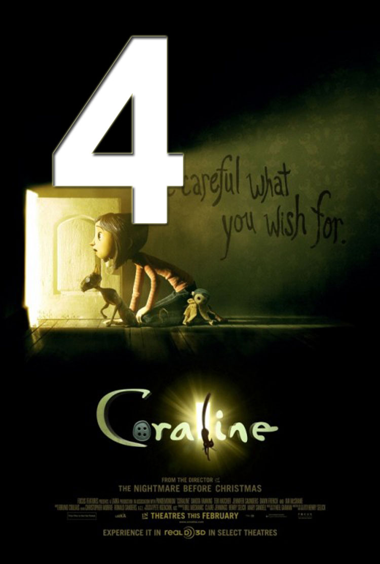 Coraline – Coraline was the first animated feature I saw in 2009, and it definitely set the bar for the year. I was happy to see stop-motion come back and make an impact. The Neil Gaiman story coupled with Henry Selick, the director from The Nightmare Before Chistmas, Coraline was a movie filled with grit and darkness set to wonderfully gloomy fantasy world. Grit and darnkess are two qualities that animated features have stayed from the past couple of years. It was good to see a film without the cute cuddly characters.